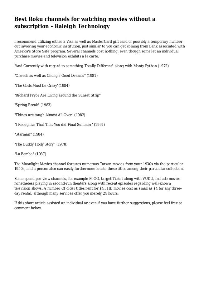 There are lots of best roku channels available on the roku channel store and so you will get an endless hour of the streaming experience. In the roku channel you're going to get a lot of that. One is the roku channel store; The advantage is that you do not have to have an itunes you can watch a few silent films as well. Now go grab some popcorn and spend your time chilling with these.